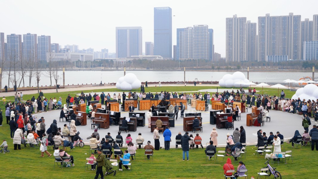40台钢琴同奏马年新春序曲(客户端采稿)(王良圆 摄)