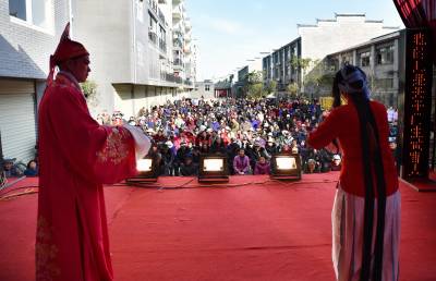 16日,孝南区朋兴乡丹阳古镇上演传统楚剧,吸引了四里八乡的乡亲们前来观看。据悉,自正月初六以来,当地村民每天都能免费享受文化大餐,一直持续到正月十五,给猴年春节增添了浓浓的年味。 (王云清 摄)