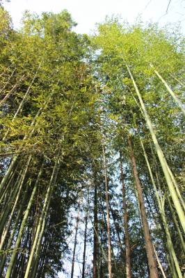 2016年2月16日,云梦县隔蒲潭镇三黄村甘家桥塆竹叶青青,高高青竹直插云霄,美不胜收。云梦是江汉平原一部分,地势平坦,没有山地、丘陵、岗地,青青高高的毛竹竹子罕见。在隔蒲潭镇三黄村甘家桥村塆,这里一处竹林齐刷刷直冲云端,引人们关注和称奇。