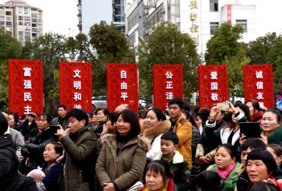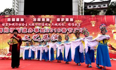 2月17日,土桥广场上,舞阳坝街道办事处官坡社区老年文艺宣传队正在表演舞蹈《祝福祖国》。 为丰富广大群众的精神文化生活,弘扬社会主义核心价值观,近日,恩施市舞阳坝、小渡船、六角亭街道办事处在州城各大广场开展“送文艺进社区”慰问演出活动。社区文艺宣传队自编自演的精彩节目轮番上演,舞蹈、京剧、腰鼓、小品、连响、快板凸显出优美的旋律、明快的节奏、动感的舞姿以及趣味盎然的雅致,不时赢得现场上千名观众的阵阵掌声。 廖康庄 胡杨 摄