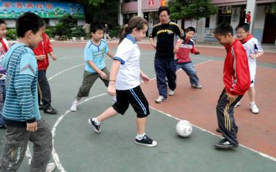 南非女孩的中国梦10日,在黄石市英才学校读三年级的南非女孩百灵正在和该校的同学踢足球。百灵从一年级开始就来到英才学校,母亲在本市一所学校教书。在该校三年的学习过程中,她已和中国同学打成一片,说着一口流利的普通话。今年世界杯足球在她的国家举行,她高兴地和同学们玩起足球。黄石市黄石日报摄影部邱孝威摄电话:13807232603邮编:435002