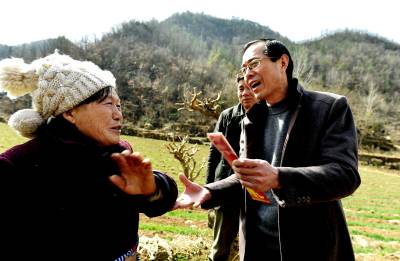 2016年2月18日,湖北省南漳县委宣传部长张功玉专程来到该县薛坪镇龙王冲村,给自己的“精准扶贫”帮扶户何国援送上3000元“拜年礼”。以支持其把土猪养好,争取早日脱贫。今年74岁的何国援,是龙王冲村38个c类贫困户之一。她儿子早逝,儿媳改嫁他乡,丈夫体弱难劳,孙女在上大学,孙子在读小学,家庭十分困难。去年,张功玉和她认亲后,春节前帮她建起猪栏,养起8头土猪。同时,还联系爱心人士,对何国援在读小学的孙子进行结对帮扶。(视界网 熊明银 魏祖华 摄)