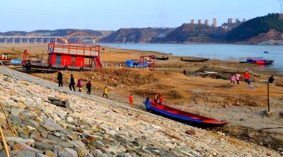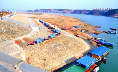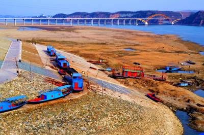 2月19日,湖北省十堰市郧阳多处汉江浅滩大面积“裸露”再现“半裸江”。受持续降雨偏少影响,南水北调湖北省十堰市郧阳区境内蓄水汉江水位回落严重,多处浅滩大面积“裸露”再现“半裸江”,水域减少致不少船只“停运”检修,跨江大桥桩基出水似“天桥”,岸边蓄水淹没标志全部成“摆设”,监测数据显示,当日汉江水位151.22米,距“最低蓄水警戒线”150米仅差1.22米。据今春水情预计,汉江还将持续回落,“半裸”背后凸显“干渴之困”。
