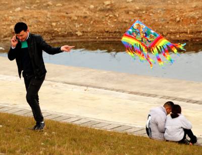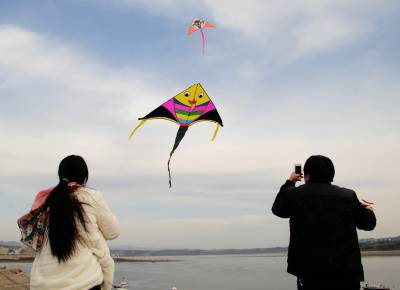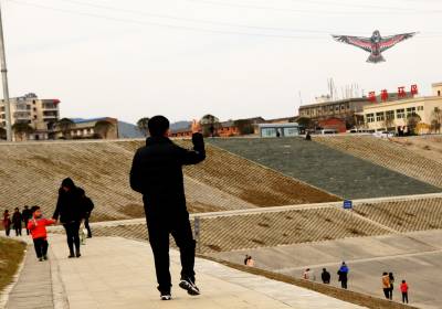 2月19日是正月十二,每天下午,南水北调中线工程水源区,十堰市郧阳区汉江段便热闹起来,许多放风筝的游客三三二二的来到汉江边放起了风筝,各型风格的风筝吸引着许多游人观看。由于南水北调中线工程在江边砌筑堤岸工程,让荒草滩变成游人的好去处。 视界网周家山 摄