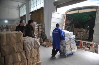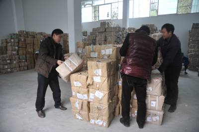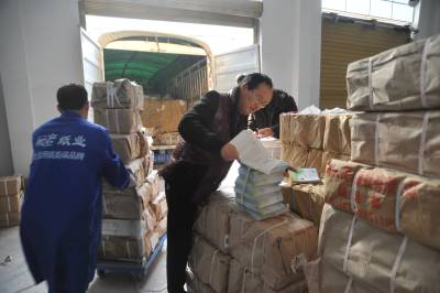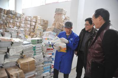 2月19日,鹤峰县新华书店仓库,工作人员正在对新教材清数、整理归类、打包上车,配送到邬阳乡学校。 该县将于23日正式开学,连日来,新华书店调配人力物力,将20万余册教材分发、配送到各中小学校,确保开学第一天学生领到新书。