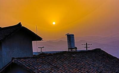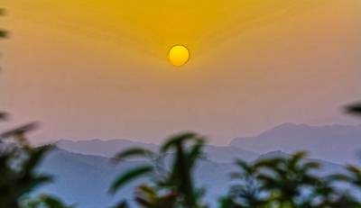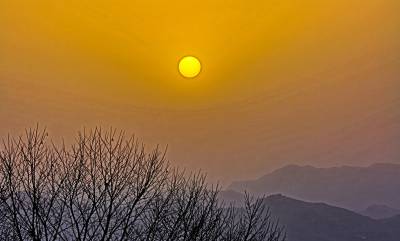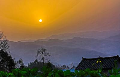 2016年2月20日清晨,竹溪害羞的旭日遮遮掩掩地升起(视界网温大树摄)。