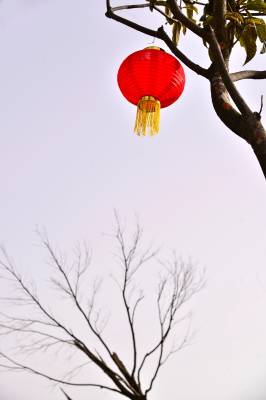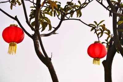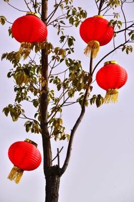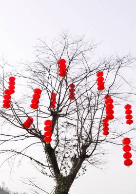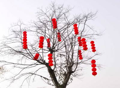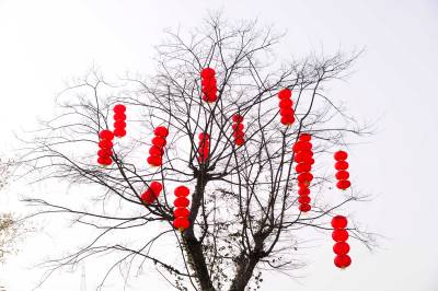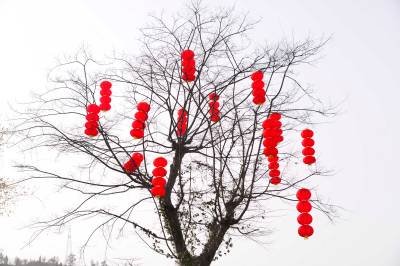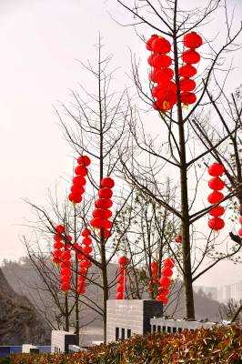 2月20日,湖北十堰市城区某住宅区内的树上挂起灯笼、摆着鲜花,盛装迎接元宵佳节的到来。