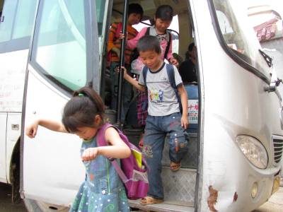2010年6月10日下午,湖北省十堰市郧县刘洞镇白沟教学点的4名小学生看到一辆”三堰至刘洞”线路的大巴从远处驶来,他们伸手一招呼,车马上停下来,然后就一声欢呼跑到车上。这辆客车就是自2008年以来顺路免费送学生上下学,被当地人传为佳话的”爱心大巴”。这辆客车车主就是该县汽运公司司机李茂清。2008年初,李茂清被公司调整负责跑”三堰至刘洞”路线。每天早上从刘洞镇发车至三堰,下午又从三堰发车至刘洞镇。白沟教学点就是处于这条路线上的一所学校。张山是距离这所学校较远的村庄,也在这条路线上,孩子们每天到学校要跑4公里路。孩子上学难成了困扰家长的心病。让村民意想不到的是,李师傅的到来解决了这一难题。李师傅早上从刘洞镇发车至三堰时,他顺路把学生送上学,下午从三堰发车至刘洞镇时,他顺路把学生送回家。李师傅说,2008年他捎带的学生有9名,2009年有7名,今年只有4名。李师傅回忆说,他第一次免费捎带学生回家是2008年的一天下午,那天下大雨,有9名学生冒雨在路上跑,他停下来让学生坐车,学生说没有钱不坐。他见孩子们淋的可怜,就说:”不要钱,快上车。”在车上通过询问,他了解到孩子们上学的艰难,于是就怀着一份爱心顺路捎带这些学生,而且一带就是两年多。(湖北省郧县教育局文:张俊高超图:曹忠宏邮编442525电话13294212877)