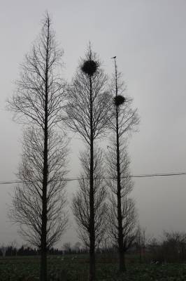 2016年02月21日,云梦县城乡众多鸟巢,鸟儿来此栖息繁衍。云梦县地处江汉平原,近年来围绕“绿满荆楚”“绿满梦泽”加快绿化步伐,森林覆盖率不断提高,生态环境不断改善,吸引众多鸟儿来此筑巢栖息繁衍。一个个鸟巢高悬树上,成为平原农村一道靓丽的景观。