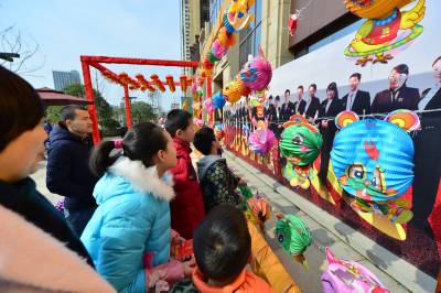 2月22日,在襄阳市某楼盘售楼部,市民争着猜灯谜领奖品。当日正值中国传统节日元宵节,襄阳的公园、商场等公共场所纷纷组织赏花灯、猜灯谜等活动,商家也借此机会聚集人气。 视界网 谢勇 摄