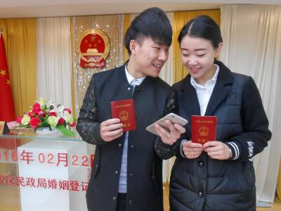 2016年2月22日,寓意着爱你一路爱爱爱。当日是猴年正月十五元宵佳节,同时也是全市有情人终成眷属喜结良缘的大喜日子。上午10点多钟,黄志涛(左)李佳(右)这对幸福的恋人,高兴走进了湖北省武汉市江汉区民政婚姻登记处,在国旗国徽前庄严宣读了结婚誓词,工作人员现场热情为他俩颁发了结婚证,他俩由相恋的情人,结为了合法夫妻,步入了美满姻缘的殿堂。而有趣的是,去年的2月22日他们相识相知相认,情投意合。今年的2月22日,他们携手并进,永结同心,白头偕老,喜逢猴年正月十五元宵佳节。当日该区有20对恋人,喜领了结婚证。
