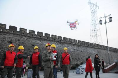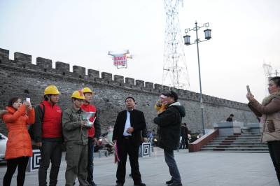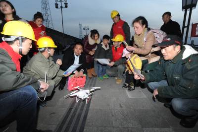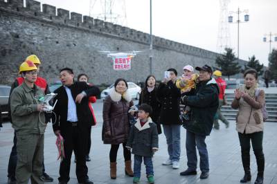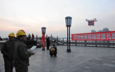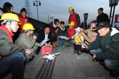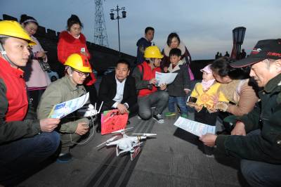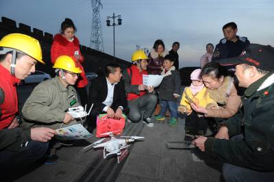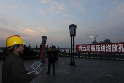 2月22日晚,元宵佳节,国网襄阳供电公司检修分公司输电党员服务队开展“请远离高压线燃放孔明灯”护线宣传活动。活动现场,电力员工在汉江两岸市民集中的千福码头、小北门向市民进行护线宣传。无人机上“高压线下禁放孔明灯”的宣传标语引起广大市民的关注。