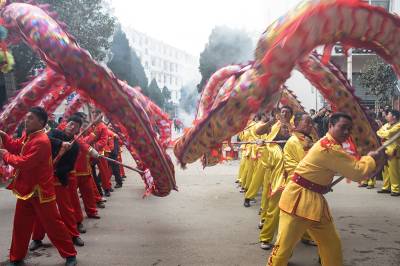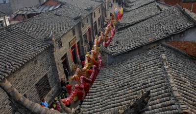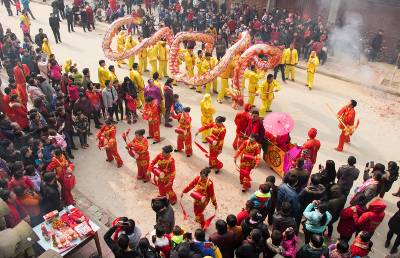 每年元宵节,红安农村的乡亲舞龙灯,敲锣鼓,彩莲船,走村串户,相互拜年。独具地域特色的民间年俗活动中最为热闹的还是舞龙灯,它是红安民间传统习俗。舞龙从正月十三开始,至正月十六结束,它传递着人们对美好生活的憧憬和祝愿。猴年元宵节这天,红安县七里坪镇人山人海,十里八乡的村民们聚集在一起观看舞龙灯,闹新春。2条长龙蜿蜒前行,一路上彩旗飘飘、锣鼓喧天、鞭炮齐鸣,场面非常壮观、喜庆、热闹。舞龙灯最热烈最精彩的舞灯场面是“打旋”,也是观灯者最向往、最兴奋、最激动人心的时刻,灯龙蜿蜒缠绕,盘旋腾舞,千姿百态,变幻无穷,令人目不暇接、乐不可支,把迎灯活动推向了高潮。舞龙灯,传承传统文化,展现群众乐观向上的精神风貌,增添了节日气氛,更是讴歌了伟大的社会主义祖国。祝愿祖国繁荣强盛、人民富裕幸福。(红安县曾建新)