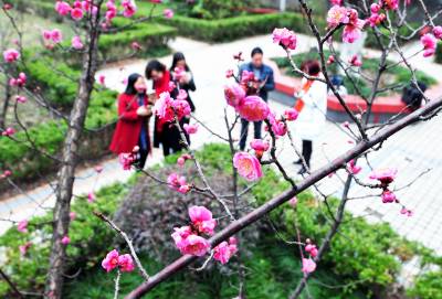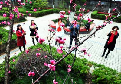 赏梅踏青喜迎春 23日,几名游客在巴东县官渡口镇一植物园内赏梅拍照。 春节过后,长江巫峡大地气温回暖,梅花盛开。处处是溪水潺潺、小鸟渣渣、蜜蜂嗡嗡、农民吆喝声,春天来了。不少市民选择春游出行,零距离寻味春的气息,感受猴年春天鸟语花香。(视界网 梁勇 摄)13986846069