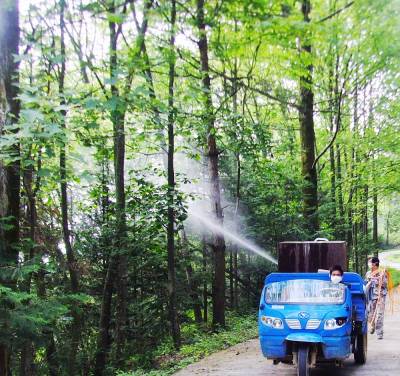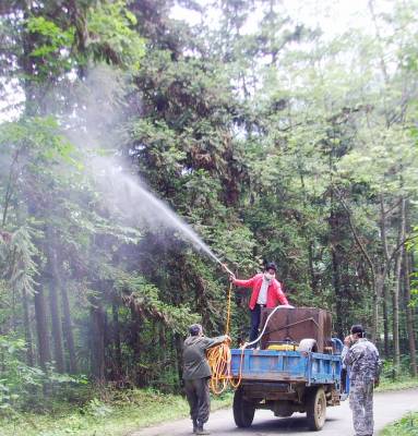 防虫冶病保资源6月11日,竹山县九华山国有林场林业技术人员正在为林木喷晒药物治虫(如图)。因受气温影响,竹山县九华山国有林场境内发生大面积银杏大蚕娥虫害,受灾面积达5000余亩,其中重灾区达3500亩。虫灾发生后,该县森防站及九华山国有林场积极采取措施,投入资金5万多元,人力100余人(次),对受灾区域进行氧化乐果、单打冠军等药物喷晒和烟雾防治,目前,虫害己基本得到控制。(操春林)竹山县林业局邮编:442200电话:13997822006