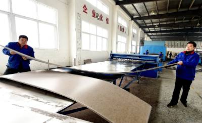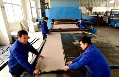 2016年2月23日,工人们正在生产订单产品。湖北南泽汽车复合材料有限公司自正月初八正式开工以来,因为企业订单充足,车间生产设备已开足马力。PVC表皮复合麻纤维板已经完成厦门金龙XMQ6125G,G1700002-300车出口沙特300余台订单供货。与此同时,公司按德国MAN客车的标准,聚丙烯发泡复合板,已接东风襄阳旅行车12m混合动力车300台订单和东风悦达起亚PFC,YDC等车型3000台订单。前两个月企业产值同比增加15%。实现新春开门红。