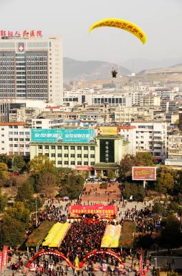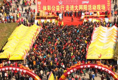 2月26日,"体彩公益行 走进郧阳"活动在十堰市郧阳区郧阳文化广场火爆进行。此次体育彩票发售将有5个30万元和10个10万元大奖售出,一批名星秀将登场助阵,彩票发售8天至3月4日结朿。所募资金支持贫困地区体育事业发展。 视界网周家山 摄