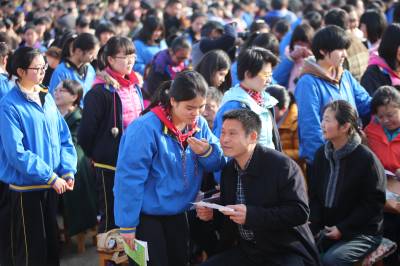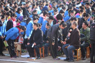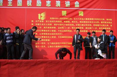 2月27日,百年老校、三年内两次囊括湖北省文理科第一名的襄阳五中举办2016届学生十八岁成人宣誓、高考百日誓师暨励志演讲会。在雄壮的国歌后,2000多名高三学生在老师的带领下向着父母、师长、同学,向着他们自已,向着他们的梦想、信念和憧憬发出了庄严的宣誓:我们是成年人了,是共和国最年轻的合法公民,是祖国的新兴力量。