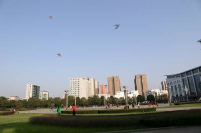 2016年2月27日,春风和煦,艳阳高照,孝感市民纷纷走出家门,享受春天的阳光,一些市民在湖北工程学院的人文广场放飞风筝。(祝大桥 摄)
