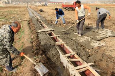 2月28日,房县军店镇上茅坪村农民正在新修渠道。该县抢抓春耕备耕农时,新修、防渗最后一公里“梗阻”农渠,确保全县12.5万亩农田灌溉用水。近5年来,县水务局在城关、红塔、军店、土城、青峰等9个产粮重点乡镇,完成兴建高效节水渠道755.3公里,受益项目区内水利用率由过去的40%提高到85%,农田灌溉用水保障率达到98%,为农民增收粮食奠定了坚实基础。