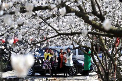 文仙洞村于2009年成立了湖北首家以樱桃种植、观赏、生产、包装、销售为一体的“仙女红樱桃”农民专业合作社,网络社员300多户,建成了“三月赏樱桃花、五月采樱桃”优质樱桃旅游观光休闲园500多亩,年产樱桃鲜果50万公斤,成为当地农民增收致富的主导产业。目前,该村年接待休闲观光游客达到6万多人次,被誉为“城郊生态花果之村”。 视界网 张国荣 摄
