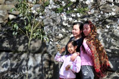 阳春三月,在西陵峡畔的宜昌市夷陵区文仙洞村,成团成簇雪白的樱桃花俏上枝头,春意盎然的乡村美景吸引游客纷至沓来,留影赏花,山乡田园盛开的樱桃花让古老的山村焕发出新的魅力。