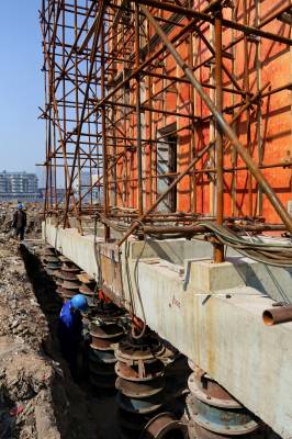 汉口义勇消防联合会旧址位于安徽街5号,曾列入我市第五批文物保护单位。由于其所处的银丰片地块已出售,有关单位拟将其移至该地块的东南角,平移距离达百余米。昨日,施工人员已用液压千斤顶将该楼抬高,并铺设好平移轨道,预计两周后实施平移。据了解,民国建立后,汉口工商界组建群众性救火组织,名曰“商团保安联合会”,下设48个分会,拥有消防车24辆。消防队员由商店、行栈职工组成,自愿参加,不计报酬,曾多次扑灭汉正街大火。