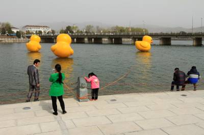 大黄鸭嬉水醉游人