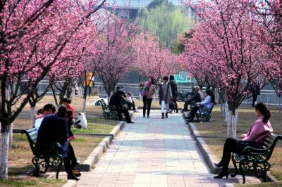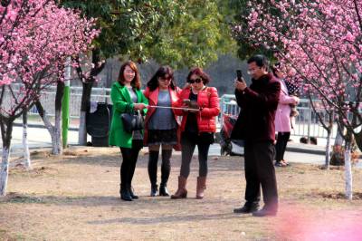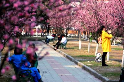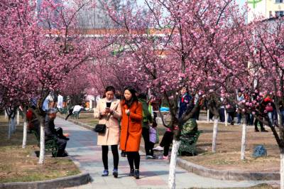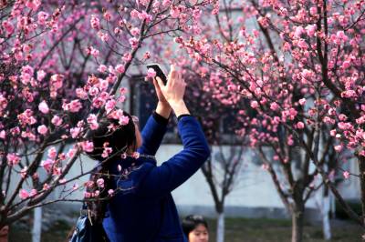 2月29日,十堰,天气晴好,春回大地,风和日丽,湖北医药学院校园内的梅花正进入盛花期,一簇簇花团锦簇,春色艳丽,吸引众多市民前来踏春赏梅,沐浴春天的美好时光。