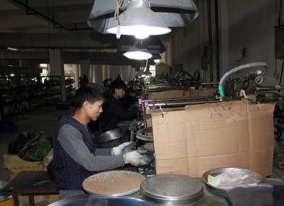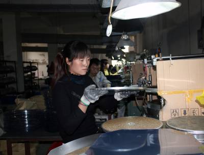 2月29日,位于黄梅县大胜关山工业园的湖北宇星水钻饰品公司,工人们在彩钻过塑生产车间赶制订单产品。该公司是全国最大的集研发、生产、销售水晶玻璃钻石饰品于一体的企业之一,拥有全自动水钻磨抛生产线100余条,其彩钻销量占全国市场份额的60%以上,而且产品畅销印度、巴基斯坦及中东等国家和地区。今年上半年,公司已与外商签订6000万包水钻饰品饱和销售订单,产品供不应求。(视界网 吴志雄 摄)