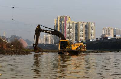 3月1日,清江恩施市城区河段,一台挖掘机在进行挖掘施工。 去年底,恩施市启动清江恩施城区段综合治理工程,增设城区污水管网、加强河岸绿化和植被保护,综合施策还清江之清。视界网 周许摄