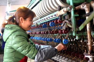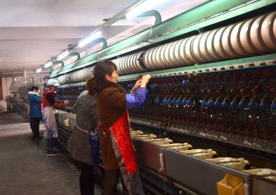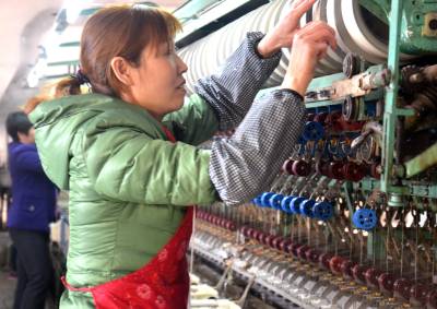 3月1日,恩施巴东金山峡农业开发有限公司缫丝车间工人正在加紧生产,一派繁忙景象。 据了解,该公司是桑园种植、桑蚕养殖、蚕茧收购 、加工、销售的多功能企业,产品出口销往多个国家和地区,今年年初拿到半成品白厂丝销售订单30多吨,当前正在赶制白厂丝订单。( 向传辉摄 住址 巴东县官渡口镇政府 电话 18963928551)