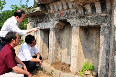 2010年6月,湖北省宜昌市第三次全国文物普查十大新发现文物亮相,该市夷陵区乐天溪大坟岭墓群名列其中。 大坟岭墓群位于宜昌市夷陵区乐天溪镇下岸溪村六组大坟岭山坡,为清代周氏家族墓,呈中轴线在山岗上,大小五座,座北朝南,形制基本相似,花岗岩石料,五层弯石砌成圆形。其中最大的一座为直径4m、碑高3.2m、宽2.8m,三门四柱上下两层,建筑饰有花鸟图案及人物彩绘。该墓群气势宏伟,至今保存完好。 据悉,宜昌另外9处新发现文物分别为五峰茶马古道、长阳榔坪丁母覃氏墓、五峰渔洋关龙窑遗址、秭归杨林岩棺墓群、兴山古夫唐君命墓、长阳资丘田正寅老屋、枝江七星台凤台街遗址、远安花林寺宝华庵和尚墓塔和五峰湾潭人民公社旧址等。本报视界网张国荣摄