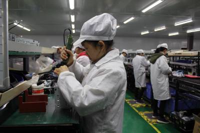 3月1日,在位于黄梅大胜关山工业园的湖北谷天电子公司,工人们在忙着组装产品。该公司是黄梅在外务工成功人士回乡投资近2亿元创办的企业。近年来,该县创优发展环境,培育创业主体,落实创业政策,激发创业热情,全县形成了谋创业、兴创业、争创业、创大业的生动局面。目前,全县实有各类市场主体5.3万户,市场主体增量行动各项指标位居全市前列,为县域经济发展提供了强大内在动力。(视界网吴志雄 摄)