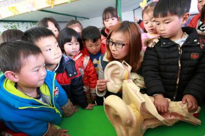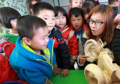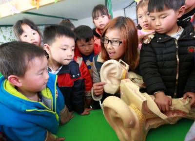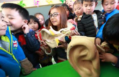 3月1日,竹山县宝丰镇中心幼儿园教师正在为孩子们讲解耳朵的构造和保护耳朵的小常识。3月3日是第17次全国爱耳日,也是第四次国际爱耳日,此次全国爱耳日活动主题为“关注儿童听力健康”。该园以“爱耳日”为契机,举办“关爱我的耳朵”专题讲座;利用黑板报、校园广播等广泛、深入地开展“爱耳日”宣传活动,有效引导幼儿和家长爱护耳朵、健康听力,提高健康意识。
