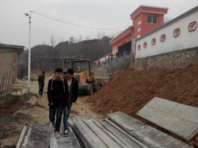 3月1日,在十堰市郧阳区白浪镇九年一贯制学校的校外,施工队正在紧锣密鼓的整修危险路段。据悉,今春开学,该校在郧阳区教育局和白浪镇党委政府的大力帮助支持下,投资90000余元,对校外的易滑坡,临水泥土路段进行加固和硬化,彻底排除安全隐患,以保证在此就读的学生人生安全。(视界网 颜克存 摄)