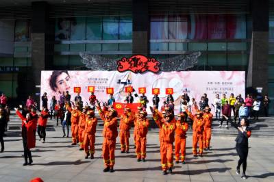“学习雷锋好榜样,忠于革命忠于党……”3月3日上午10点30分左右,在十堰人民商场的广场上,寂静的街头突然想起了一阵音乐,这从天而降的音乐声引得路人纷纷驻足观望。随着音乐声的想起,一道道橘色闪电整齐有序地出现在广场中间,伴着熟悉欢快的《学习雷锋好榜样》旋律,跳起了活力时尚的街舞。