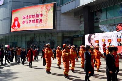在全国第53个“学雷锋纪念日”到来之际,十堰张湾消防大队官兵们联合人民商场志愿者运用时下流行的“快闪”形式走上街头,以一种特别的方式来怀念雷锋,宣传雷锋精神,呼吁广大市民行动起来,学习雷锋精神,弘扬时代主旋律,传递社会正能量。(薛乐生 蒋 锋)