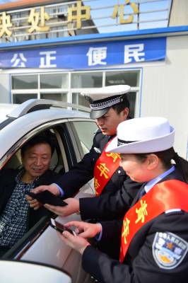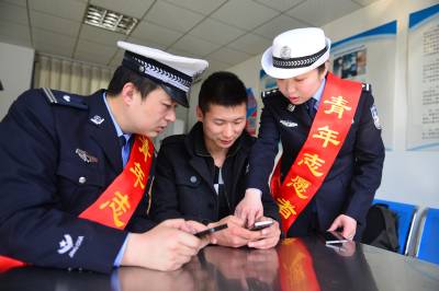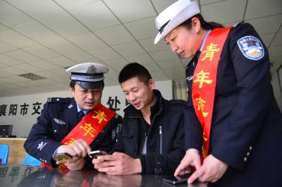 3月3日,在襄阳市交通事故快处中心,交警部门组织学雷锋志愿者,为司机讲解如何通过微信处理交通事故。襄阳交警在官方微信推出快处功能,以方便车主在发生轻微事故后不用到快处中心,就能及时处理。 视界网 谢勇 摄