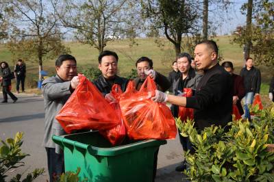党员清理游客留下的白色垃圾