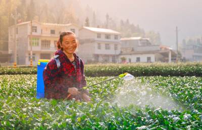 2016年3月1日,恩施市白果乡下村坝村一村民正在自家的茶园里给茶叶喷洒沼气,进行叶面施肥。 据说这种叶面施肥是无毒无害的,必须赶在春茶发芽之前进行,它可以促进新茶长得更好。