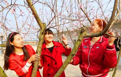 本报荆州讯(通讯员 孟庆虎) 3月4日,中铁大桥局蒙西华中铁路公安长江大桥工地员工在生活区桃园观赏桃花。 项目部进工地时,把员工驻地环境美化当作“三工”建设的重要工作来抓,在生活区种植桃树100余棵,桂花树、红叶石楠树100余棵,还种有香樟、玉兰等树。在桃花、桂花盛开时节,生活区到处散发着喷鼻的香味。近日,随着气温回升,今年桃花要比往年开的早一些,员工们不出工地即可赏花观景。