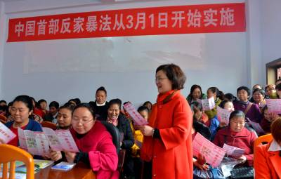 别样的“三八”节礼物 4日,咸丰县高乐山镇东门沟村100名农村妇女齐聚一堂,学习《反家庭暴力法》、《妇女权益保护法》等相关法律法规,以这种特别的方式提前庆祝“三八”妇女节。 咸丰县通过发放宣传手册、干部进村宣讲、开展维护妇女权益普法活动等形式,进一步增强广大农村和偏远山区妇女反家庭暴力意识,引导她们敢于拿起法律的武器,依法维护自身权益。(视界网 宋海燕 摄)