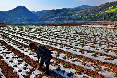 3月4日,在巴东县溪丘湾乡平阳坝村8组,留守妇女们在帮助蔬菜种植大户贾玉芝刚移栽的辣椒苗培土、浇水保墒。 三峡蓄水后,平阳坝村形成2000多亩大湖泊,贾玉芝夫妇在精心打理20个大棚蔬菜的同时,抢抓三峡水库滕库防洪江水消退机遇,利用滩涂种植辣椒、西红柿、茄子和黄瓜等季节性蔬菜,年收入达30万元,成为该乡农业科技推广示范户和致富能手。(视界网王祖满摄 15272999779)