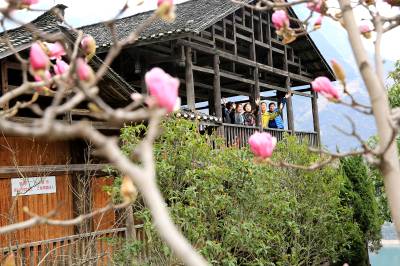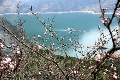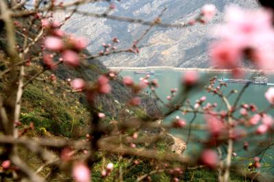 当日,是二十四节气之一的惊蛰, 气温转暖,万物苏醒,雨后初晴,山花、碧水、高峡相互掩映,如诗如画。 湖北视界网 王罡 摄
