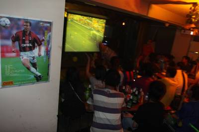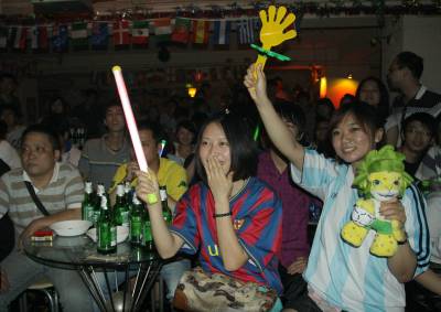 2010年6月11日晚,世界杯足球赛在南非开启,球迷们的节日开始了,武汉众多球迷纷纷相聚酒吧、体育彩票店、酒店观赏,开心、开怀,乐此不疲。