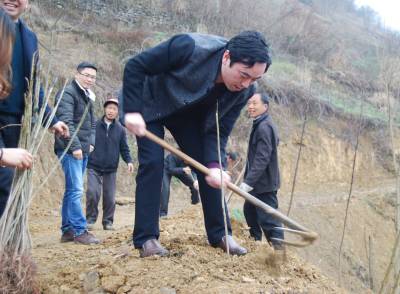 帮扶村植树忙 3月6日,建始县政法委干部在该县官店镇刘家包村与村民一道挥锄植树。作为精准扶贫点,该县政法委干部早早一起与村里制定产业发展规划,把贫困村民因地制宜发展产业,掀起春耕备耕热潮。本报视界网刘波摄 建始县新闻中心刘波联系电话13032794298