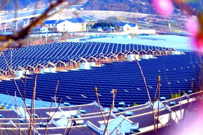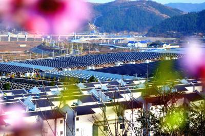 近年来,湖北省十堰市积极打造生态环境优美宜居新农村工程和生态观光农业旅游富民工程,成绩凸显。如今,一幢幢移民“小洋楼”,整齐划一、鳞次栉比;40兆瓦1400亩南水北调丹江江口库区装机容量最大的光伏发电项目自去年8月并网后运转正常,其光伏棚在明媚的阳光下呈迷幻的“荧蓝”;再配上时下的春花、红叶、碧树、蓝天、白云、景观路、桥,光伏移民新村呈现出一幅和谐壮观的秀美画卷。