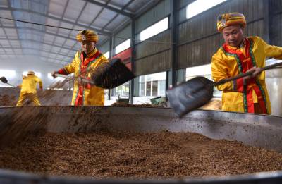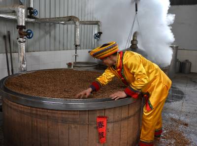 春酿出好酒 10日,恩施州咸丰县高乐山镇一处酿酒房里,土家酿酒师正在春酿,酒香扑鼻而来。 地处北纬30度的咸丰县是土苗民族的聚集地,当地人利用武陵山区绿色资源——玉米、高粱、小麦为主要原料,取深山矿泉水,酿制的土家白酒,酒体醇厚,细腻优雅,回味悠长。(视界网 宋海燕摄) 13402736937