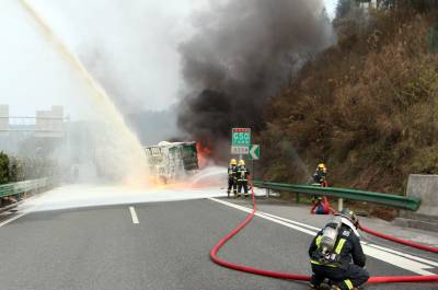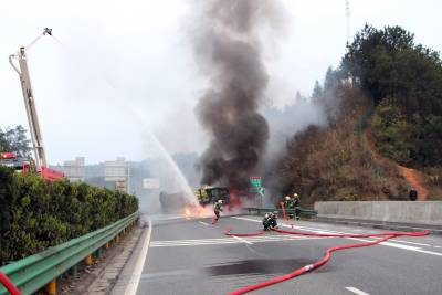 3月11日18时许,沪渝高速公路重庆往恩施方向(恩施段),一辆满载二盐酸的货车不慎起火,恩施消防接到报警后,立即调集救援力量赶赴现场扑救,并成功将大火扑灭。